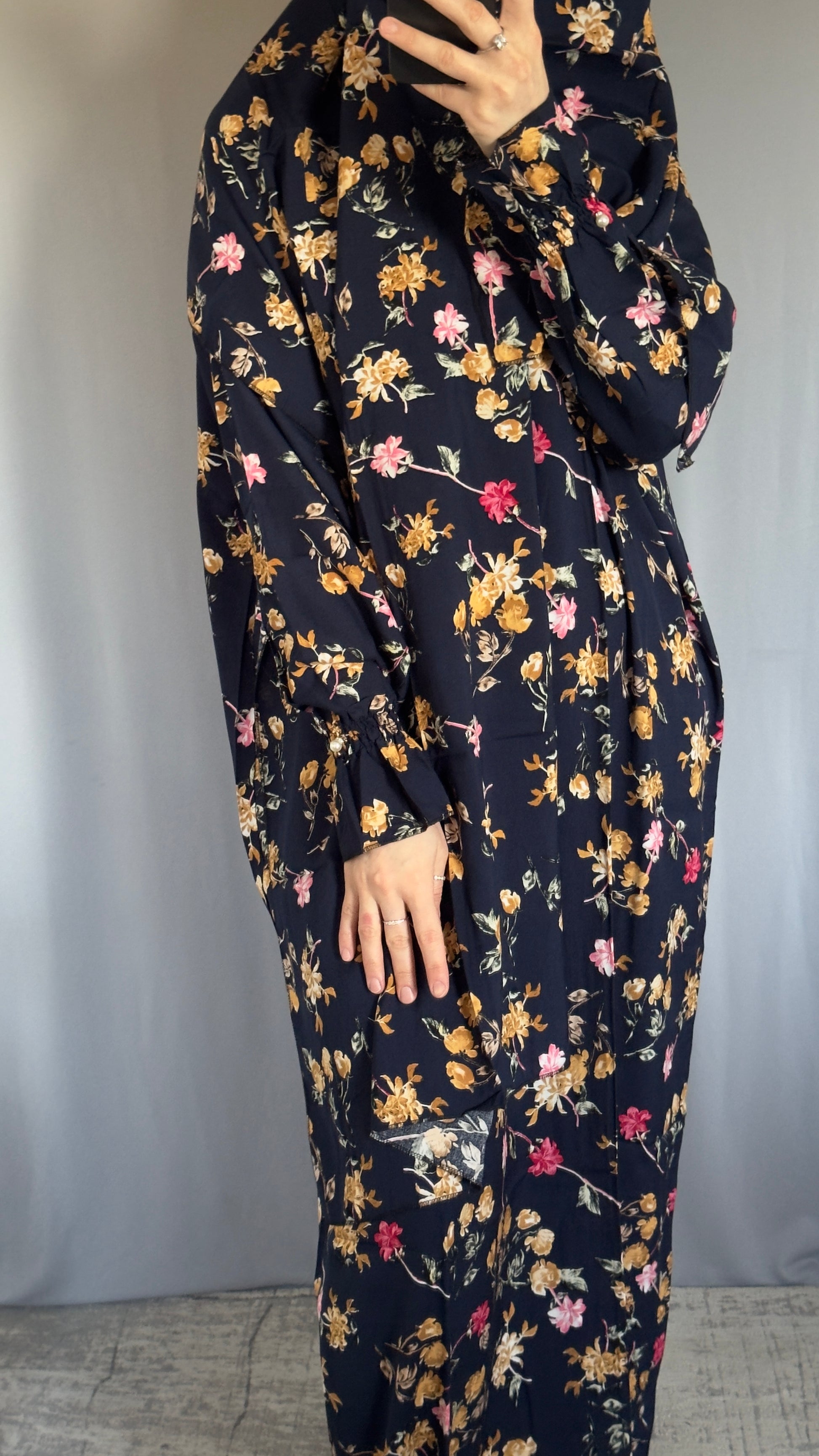 Please note if you want full foot coverage for the prayers we recommend adding extra 4 inches to your normal abaya length size so the dress fully covers your feet whilst you pray.