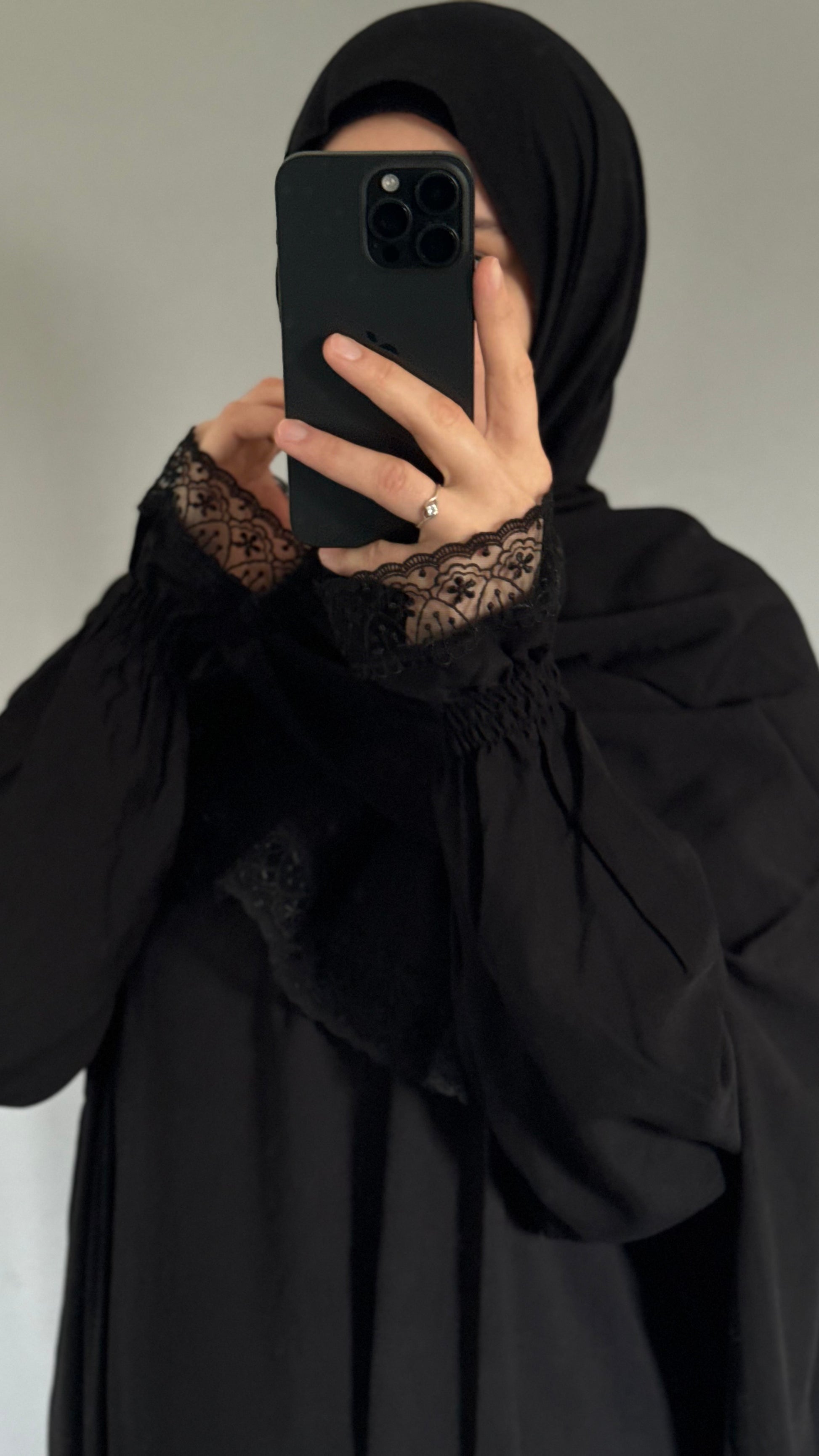 Please note if you want full foot coverage for the prayers we recommend adding extra 4 inches to your normal abaya length size so the dress fully covers your feet whilst you pray.