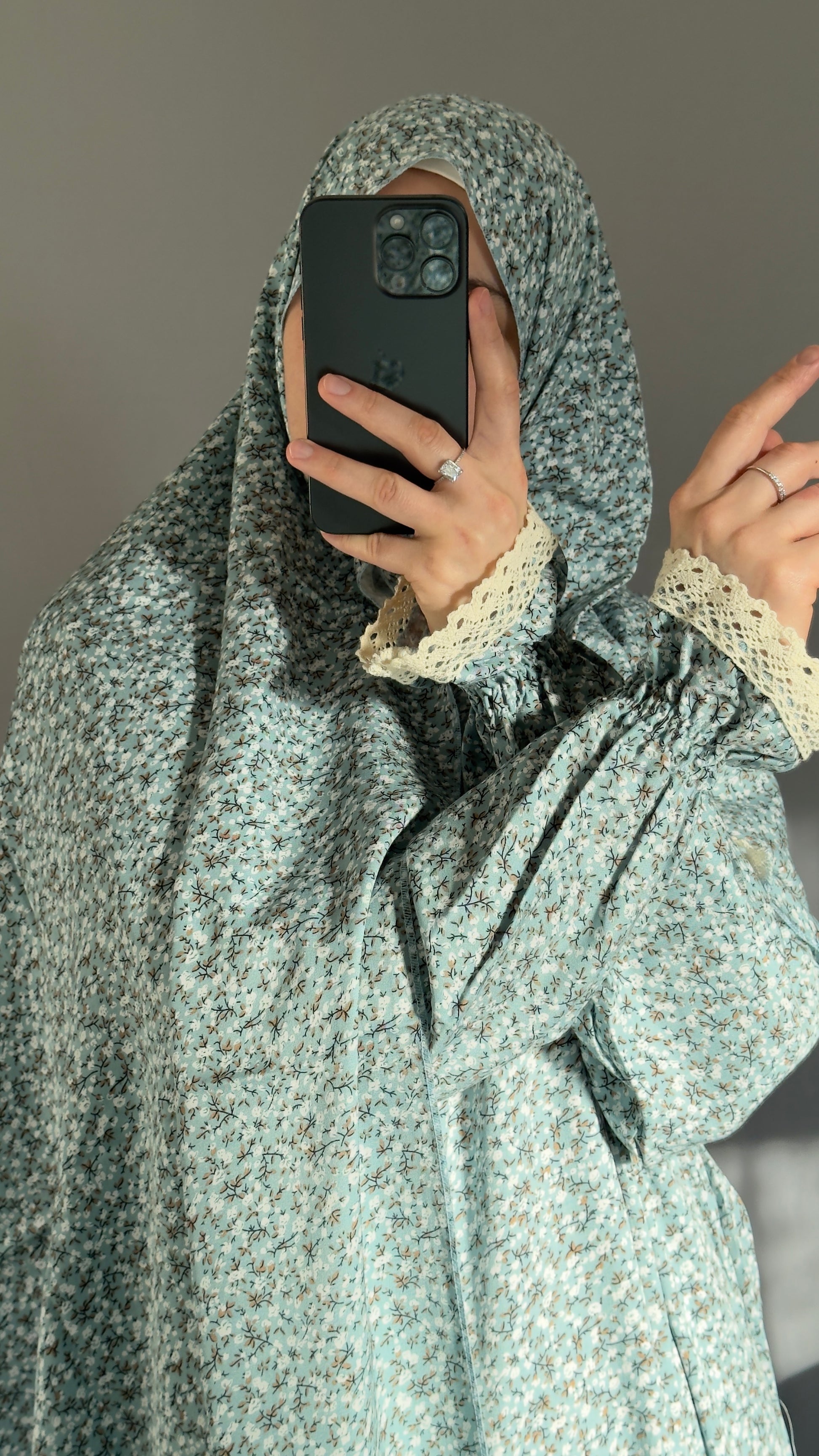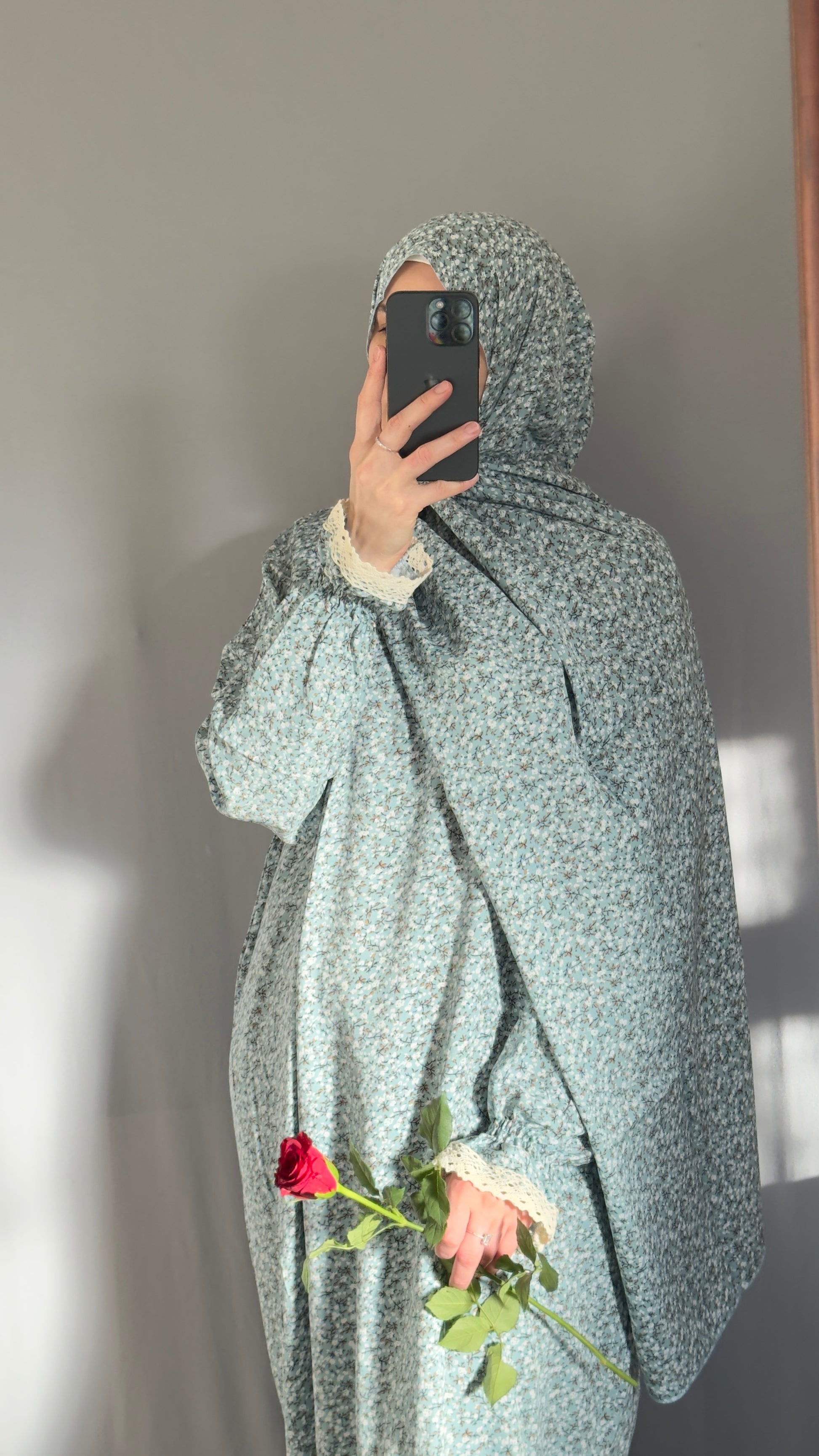 Floral Mint Cotton Prayer Dress, Prayer clothes for women, Islamic Prayer dress, Prayer Outfit, Prayer Set, Prayer Hijab, Salah dress, Islamic Gift, Muslim clothing, Prayer abaya, Ramadan Dress